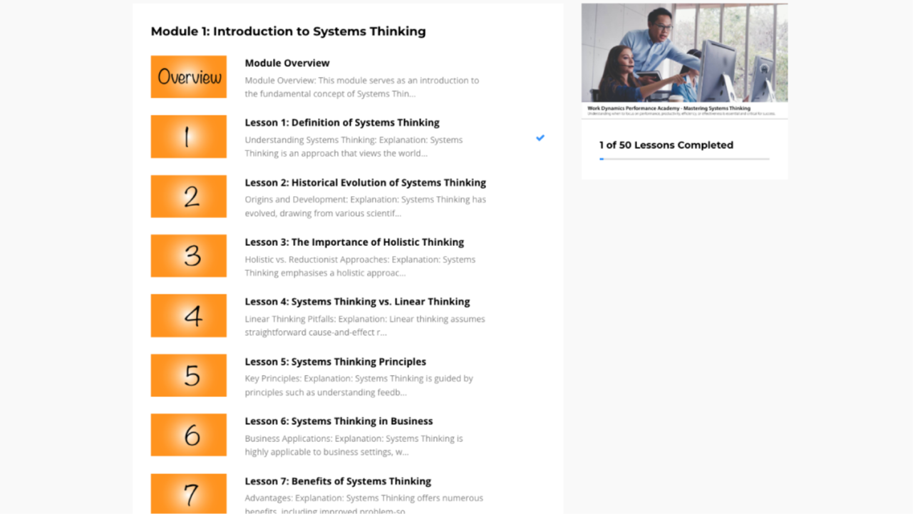Finally, the course connects theory to practice by showcasing how these principles underpin real-world solutions, such as the WorkDynamics factory model. By the end of the course, participants will be equipped with the tools and mindset to lead with systems intelligence—designing and managing systems that are robust, responsive, and ready for the future of work.