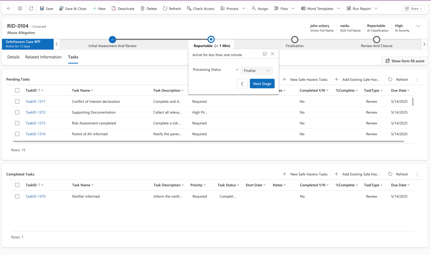 The Safe Havens platform offers a powerful, enterprise-grade Triage and Case Management system designed to support organisations in processing abuse allegations with precision, speed, and integrity. Built on secure, system-based architecture, it ensures strict governance, data retention, and compliance with child safety regulations. The triage engine intelligently prioritizes reports, enabling safeguarding teams to assess risk levels and initiate appropriate responses in real time.